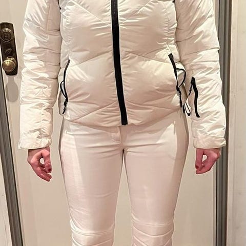 Jackan har huva och dragkedjor, byxorna har flera fickor och justerbara detaljer för passform.