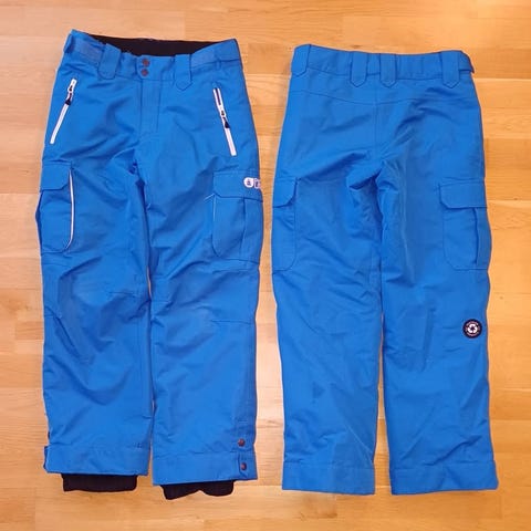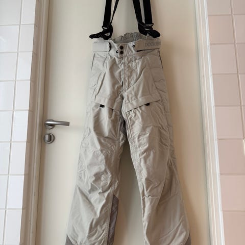 Med hängslen, knappar och flera fickor med knappar och dragkedjor. Hällor runt midja/rygg om du vill sätta dit ett fräsigt skärp. Trötta resårer i bensluten.