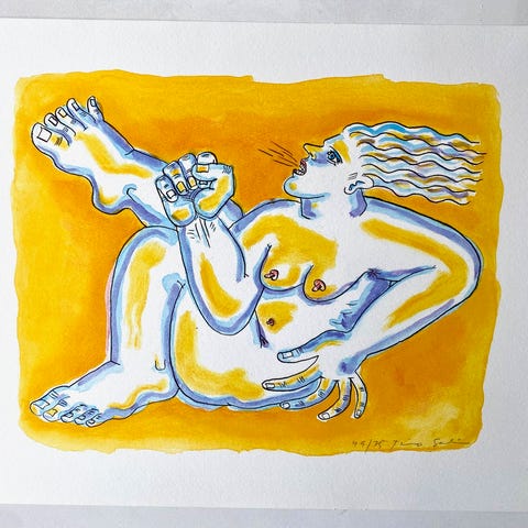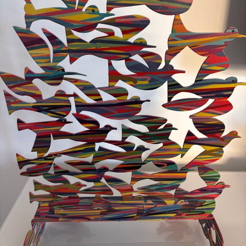 Skulptur tillverkad i metall, bemålad och fot i plexiglas. Ca 40 cm.