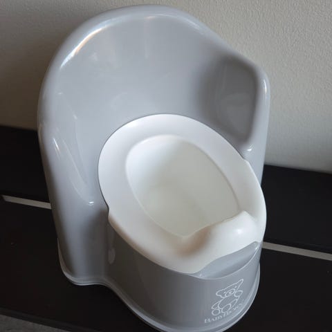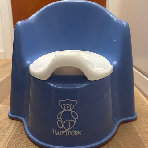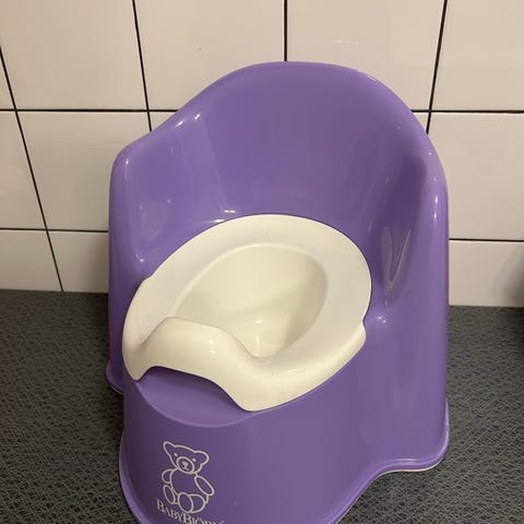 BabyBjörn potta i grön och vit samt två toalettsitsar i vit färg. Potta med ergonomisk design för barn och toalettsits som kan användas för att underlätta övergången till vuxentoalett. Tillverkad i plastmaterial.