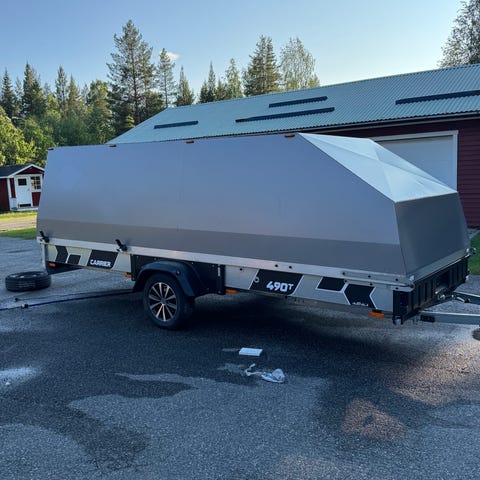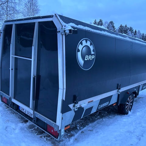 Bakgavel, ledbelysning i kåpa, ledbelysning utvändigt, plastgolv i släp och på ramp supetglides på rampen sommar och vinterdäck Mycket bra skick