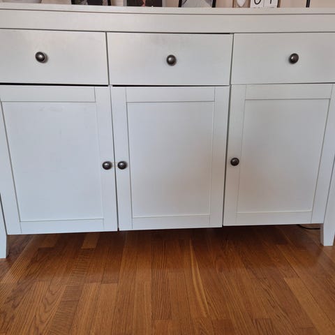 Det är lite märken på ovansidan (se bild), därav priset. Men syns ju inte om man har duk eller TV/liknande ovanpå.