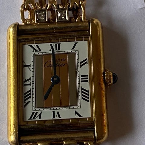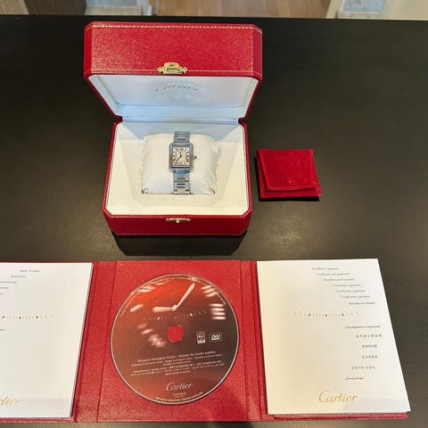 Klockan är inköpt 2023-08-25 och har använts varsamt under kortare period. Skicket är gott med spår av användning enligt bilderna. All service, hantering och kompletteringar har uteslutande skett via Cartierbutiken i Stockholm.