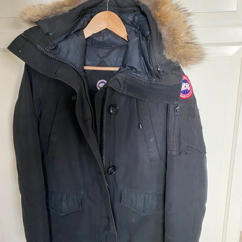 Svart dunjacka längre med pälsbrättad huva. Många fina detaljer och muddar, se bla bakifrån. Dunfyllning med rejält yttertyg.