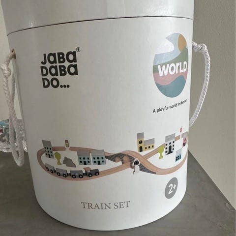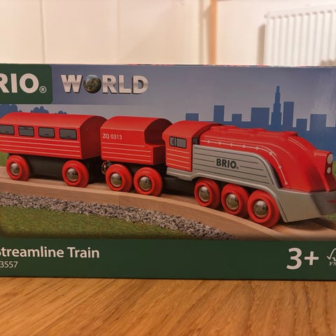 Denna innehåller allting som den ska som räls och tåget. Den har inte varit använd