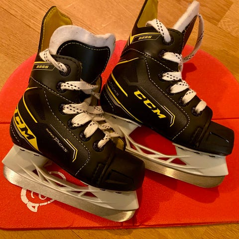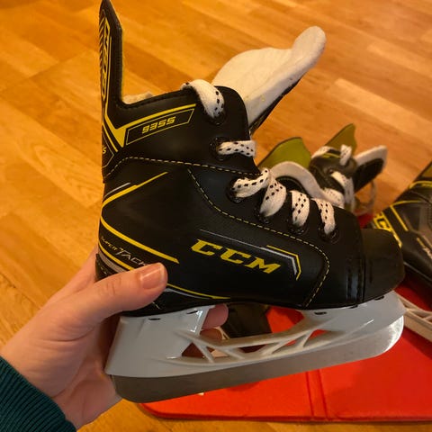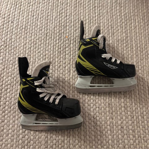 CCM Vector ishockeyskridskor för barn i storlek 28. Skorna är svarta med gula snören och är avsedda för ishockey. Väl använda men fungerar. Behöver slipas.