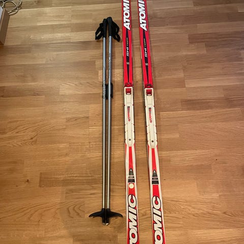 Atomic Redster Pro 2 vallningsfria längdskidor med längd 160 cm. Salomon barnpjäxor i storlek 35,5. Stavar swix 115 cm. Skidorna är sparsamt använda allt i bra skick! Passa på innan sportlovet eller nu när det faktiskt ligger snö i skåne!