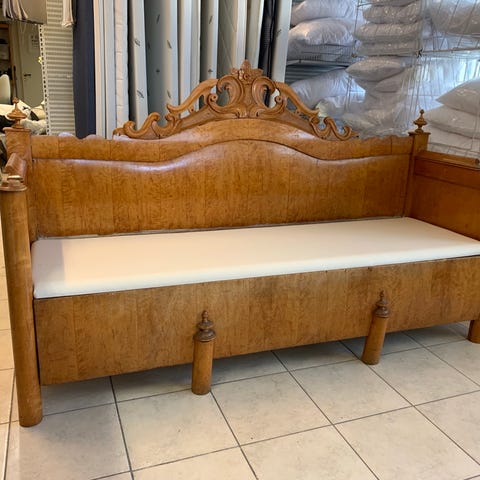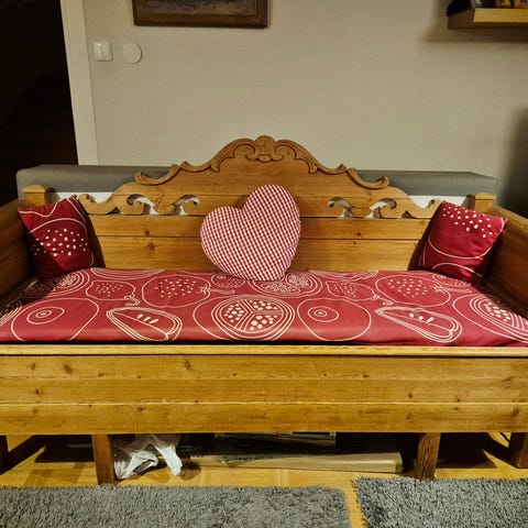 Vi säljer vår charmiga soffa i furu, kallad “Dymling” från Swedese, designad av Yngve Ekström på 70-talet. Köpte soffan på auktionsbyrån Bukowskis hösten 2023 och vi har i stort sett alltid haft en stor filt ovanpå dynorna.