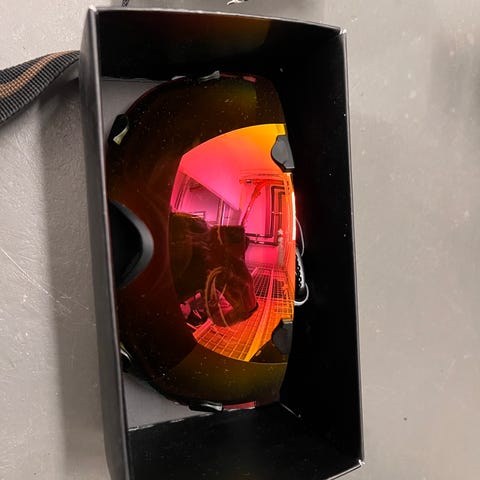 bandet. Skummet runt ögon är helt, rent i gott skick. Ett par ytliga repor på glaset dock inte där man har sin sikt. Den som syns mest är inringad på sista fotot.