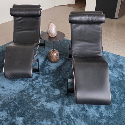 Liknande LC2 från Cassina. Väldigt mjukt skinn, fantastisk patina, ”perfekt nedsutten”