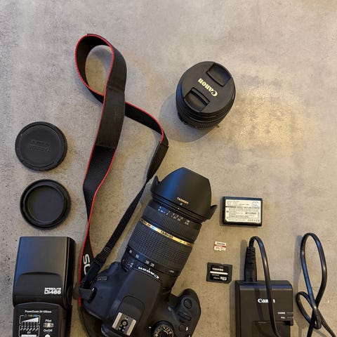 Kameran är i bra skick och har inte använts på ett par år. Kommer med original batteri och laddare samt 2 lenser. En Canon 18-55mm och en fisheye lens från samyang.
