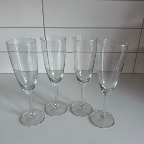 Blandade glas med olika former och storlekar. Setet innehåller glas för olika användningsområden såsom vin, vatten och snaps. Glasen är tillverkade av glasmaterial och är ofärgade.