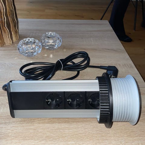 Evoline pop-up kontaktpelare 93100001 med uttag för 3 kontakter. Monteras nedsänkt i bordsskiva och lyfts upp när uttagen ska användas. Aldrig varit installerad. Nypris ca 2400kr, säljs för 950kr