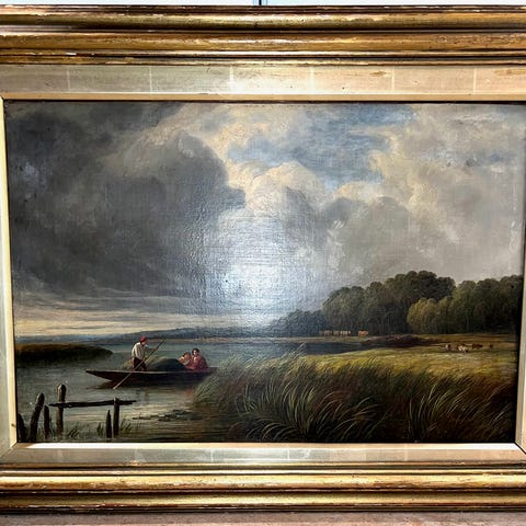 George Morley tavlor, konst, aktiv 1832-1863, 1 par genremålningar, föreställande romatiserande parklandskap med eka och svanar, mått ca 59x56