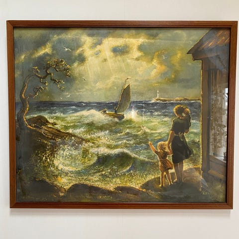 Krackelyr på enstaka ställen, en tidigare skada på ena tavlan i undre hörnen men fixad (vet ej hur) enligt bild. Inget man tänker på om man inte tittar väldigt noga enligt mig.