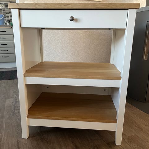 Köksö i använt skick, saknar ett hyll plan samt ett hjul under