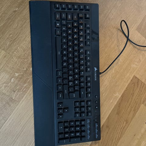 Gamingtangentbord med RGB-belysning som kan ändra färg och ljusstyrka via FN-tangenten i kombination med piltangenter eller Home. Tangentbordet har mekaniska tangenter och är svart till färgen.