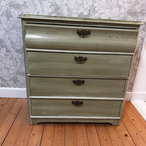 Äldre avlutad byrå. Någon låda saknar handtag se bild.
