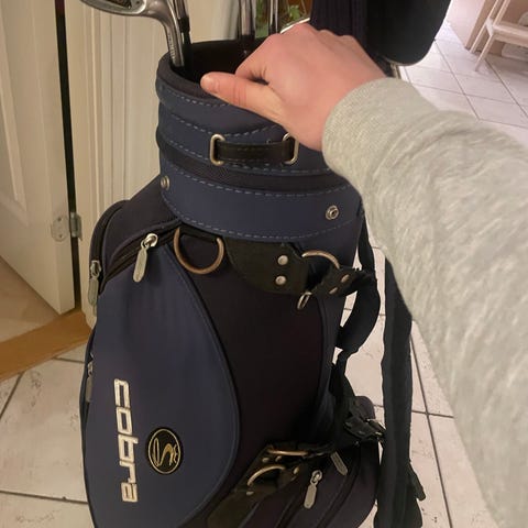 Säljer en Cobra Pass Through cart bag i gott begagnat skick. Stabil och rymlig vagnbag med smart Pass Through-funktion som gör att fickorna är lättåtkomliga även när bagen sitter på golfvagn.