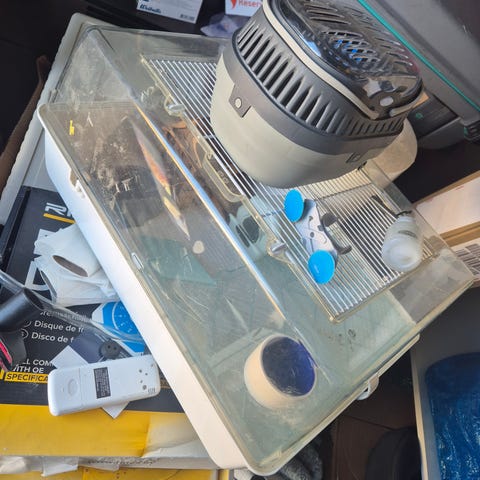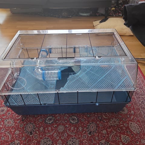Jag säljer dessa hamstertillbehör! De är väl använda men har fortfarande gott skick. Det är ett hamsterhjul, två hus, ett sandbad, en vattenflaska, en söt liten matskål och en transport bur! Hör av dig om du har frågor om du vill ha fler bilder.