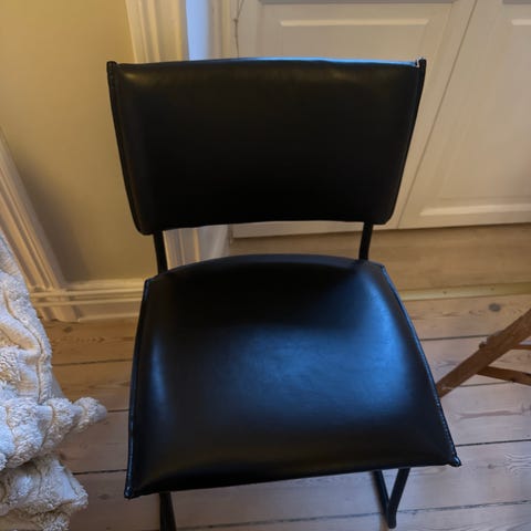 Svart vintage läder stol, Italiensk. Med stålrör. Bra pris vid snabb affär!