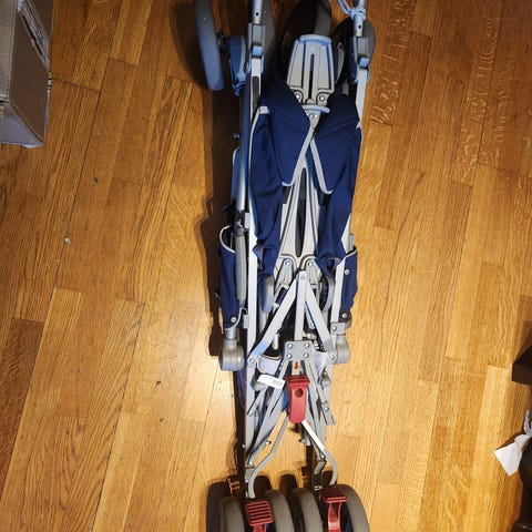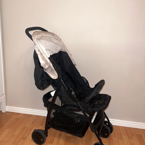 Resevagn i svart färg. Barnvagnen är hopfällbar och har ett ergonomiskt handtag. Passar för barn och är utrustad med säkerhetsbälte och justerbart ryggstöd. Levereras med regnskydd och transportväska.