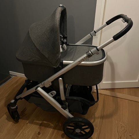 Nu säljer vi vår kompletta Uppababy Vista V2, tillverkad mar 2022, inköpt ny jan 2023. Färgen är den snygga svarta "Jake" och har varit en otrolig vagn för vårt ändamål. Det här är det kompletta paketet för dig som vill ha en vagn som växer med familjen, redo för både ett, två eller tre barn. Väldigt smidig och robust vagn som håller och tar sig fram överallt. Enkel att fälla ihop och tar inte mer plats än nödvändigt hopfälld. Sitter svarta reflexer påklistrat på flera ställen.