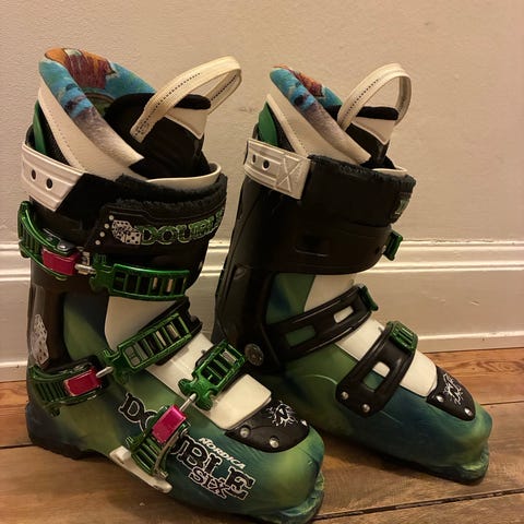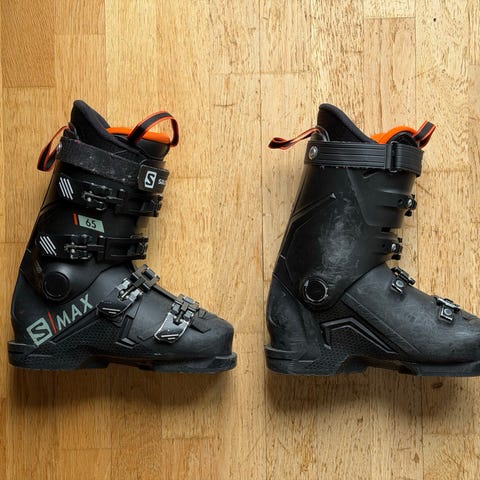 Salomon Custom Fit skidpjäxor i grått med röda detaljer. Utrustade med spännen för justerbar passform.