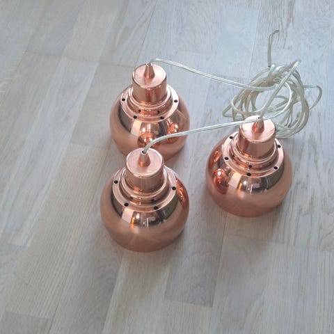 Pendelarmatur i koppar. Stilren, stil kan anpassas beroende på vilken ljuskälla du väljer.