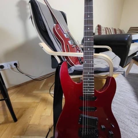 Greco från den magiska serien Super Real. Denna gitarr är en pärla och helt underbar att spela på. Den är justerad och intonerad för perfekt setup och allt är dessutom original. Mickarna är Screamers pickup original från 1982. Ska du ha en välgjord japansk vintagegitarr finns det knappast inte något bättre att hitta än denna Greco.