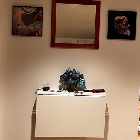 Jysk spegel med dekorativa ornament. Spegeln har en ram med detaljerade utsmyckningar och är avsedd för väggmontering. Passar för olika rum där en större spegel önskas.