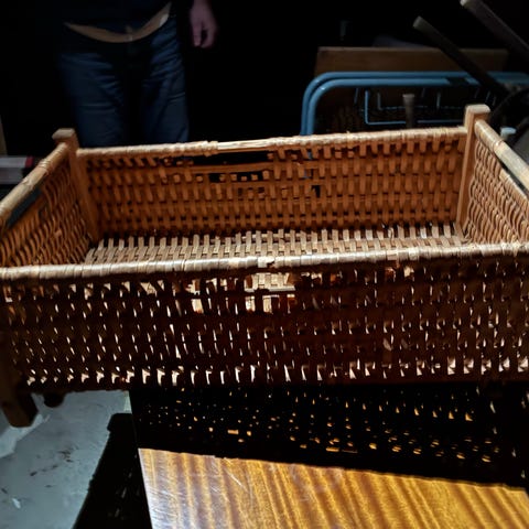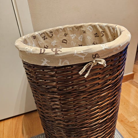 Fin äldre korg 42cm hög, 53cm bred 89cm lång. Kanske har som prydnad, till hunden, tvättkorg.