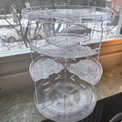 Smyckes/sminkförvaring med flera transparenta lådor och övre fack för organisering av smycken och småsaker. Förvaringsenheten är i plast och har en kombination av utdragbara lådor och öppna fack för enkel åtkomst och översikt.