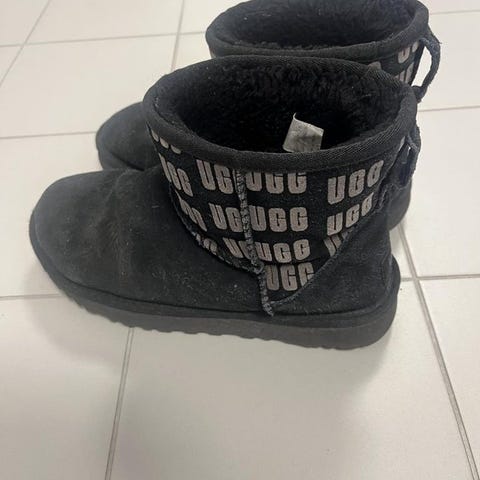 UGG stövlar i storlek 37, svart färg. Stövlarna har en blank yta och är designade för att ge skydd och komfort vid användning.