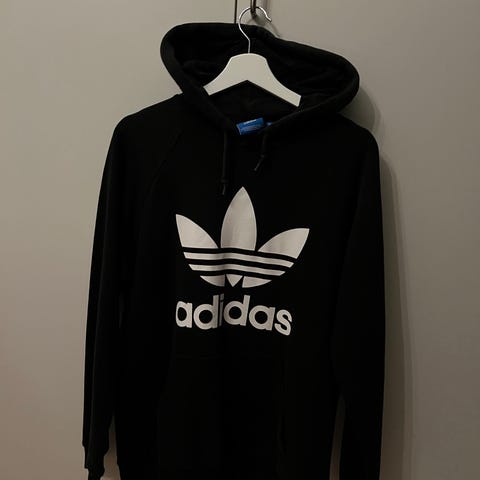 Adidas T-shirt i storlek M för män, tillverkad i svart polyester. T-shirten har klassiska Adidas-detaljer och är avsedd för vardagligt bruk eller träning.