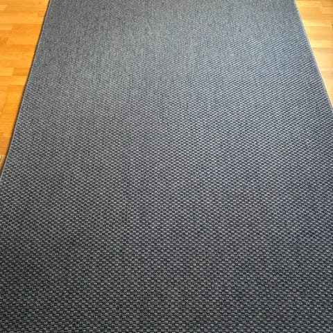 Pappelina randig matta i svart, grått och vitt. Mattan är tillverkad av plast och har en rektangulär form, 150x69 cm.