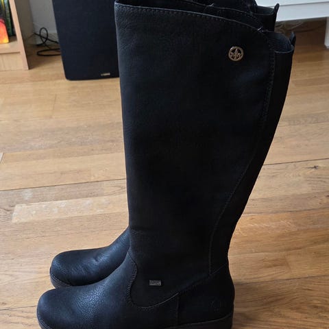 Varmfodrade stövlar ifrån rieker, storlek 39. Detta är minsann de bästa jag någonsin haft. Varma och goa! Säljer dem då jag tänkt köpa andra.