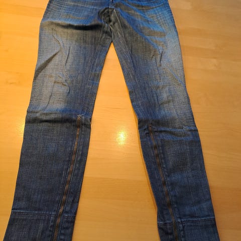 JF Lefon jeans i svart färg, storlek W26 och XS för dam. Byxorna har snörning framtill och dragkedjedetaljer vid fickorna.