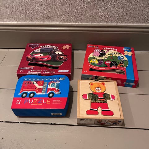 Ett fint paket med klassiska barnspel och träpussel för barn ca 3–100 år.