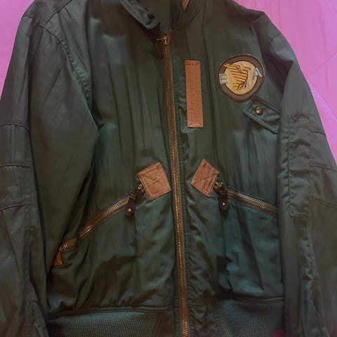 Ett unikt retroplagg i normal storlek L/50. Axelvaddarna kan sprätta bort om så önskas. Inga fläckar eller hål. Något blekt krage.