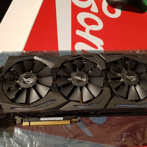 NVIDIA GTX 1070 Grafikkort med referensdesign och kylfläkt. Grafikkortet har en svart och silverfärgad metallkonstruktion med bakplåt för extra stabilitet och kylning. Används för datorer för att förbättra grafikprestanda vid spel och andra grafikintensiva applikationer.