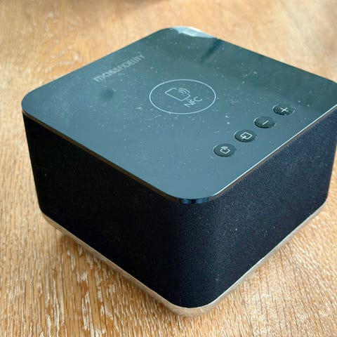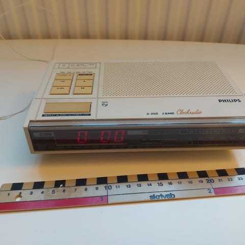 Philips digital radioklocka i svart färg med inbyggd radio och digital display som visar tid och andra funktioner. En kompakt enhet för användning i hemmet.