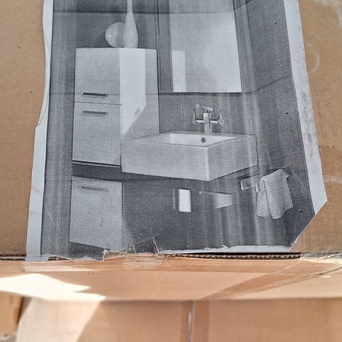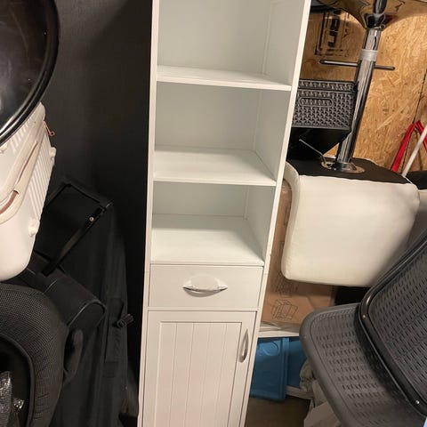 Vit badrumsskåp med spegel och hyllor