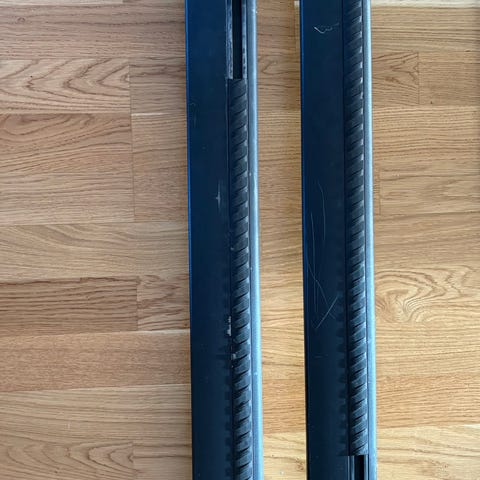 En spricka i plasten som inte påverkar funktionen på ena lasthållarfoten. ( se bild).