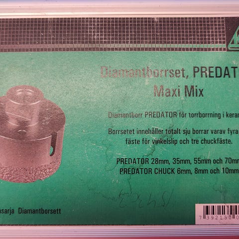 Predator Diamantborrset Large med flera diamantborrar i olika storlekar för borrning i hårda material. Setet levereras i en aluminiumväska för förvaring och transport.