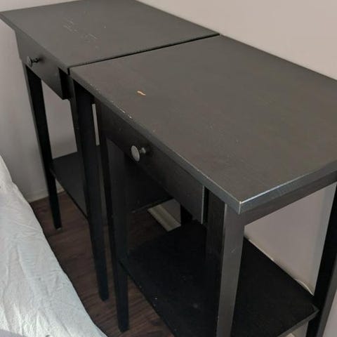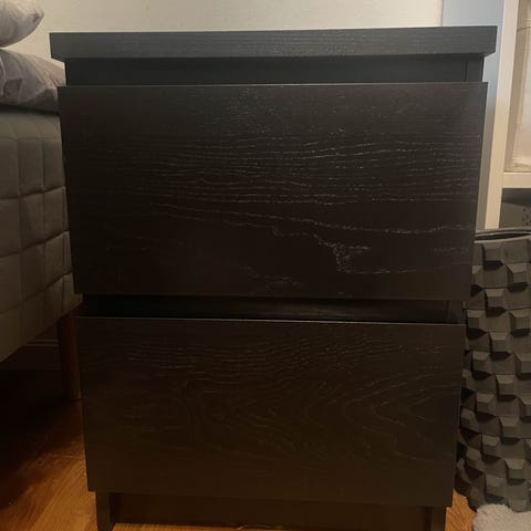 Otroligt fint sängbord/nattduksbord/sidobord i mörk rotting, med 3 rejäla lådor. Väldigt stabilt. Säljes pga flytt och ligger på flera sidor. Snabb affär prioriteras.