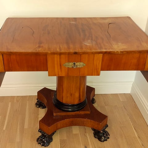 Klassiskt pelarbord i massivt trä