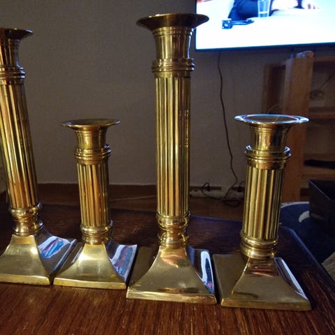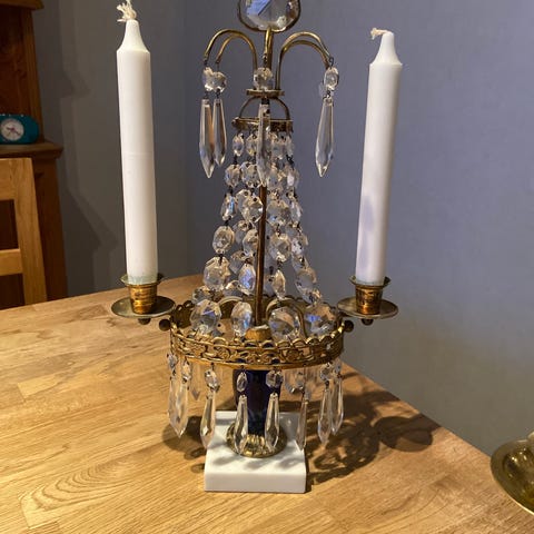 Utskuren i trä och delvis förgylld och med ljushållare