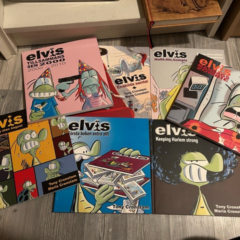 Serie med 9 st Elvis tidningar samt 1 bok med Sonny av Tony Cronstam. 250 kr för allt.