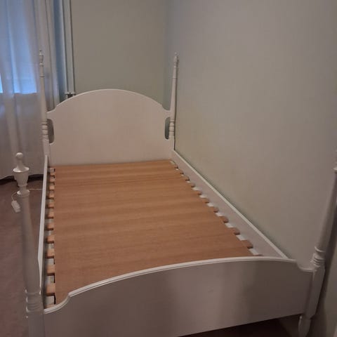 Dags att sälja dotterns säng. Madrass ingår. Sängen kan göras om till dubbelsäng och kommer att vara avmonterad vid hämtning.”
